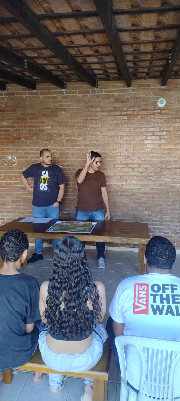 Inicialmente os alunos utilizaram a metodologia da roda de conversa, explicando as regras do jogo e conduzindo os jovens à reflexão, após o diálogo, todos se dividiram em equipes e jogaram o jogo proposto. A participação do público, mesmo com a dispersão em alguns momentos, e a conclusão do jogo por todos os grupos, culminando na “Eudaimonia”, representaram momentos importantes de interação e aprendizado mútuo.